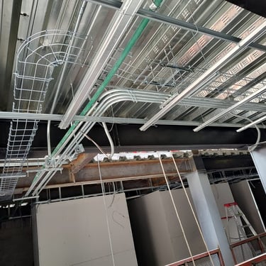 Diseño de rutas aéreas de alta capacidad para centros de datos o naves industriales, calculando soportería unistrut y herrajes de fijación.